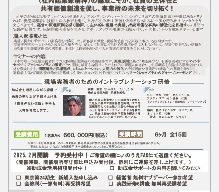 2025年2月東京開講のイントラプレナーシップ研修の申し…