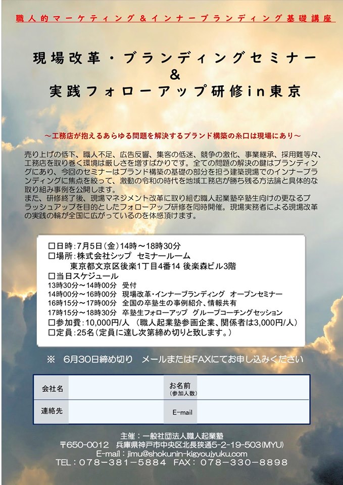 建築現場改革・ブランディングセミナー & 実践フォローアップ研修in東京