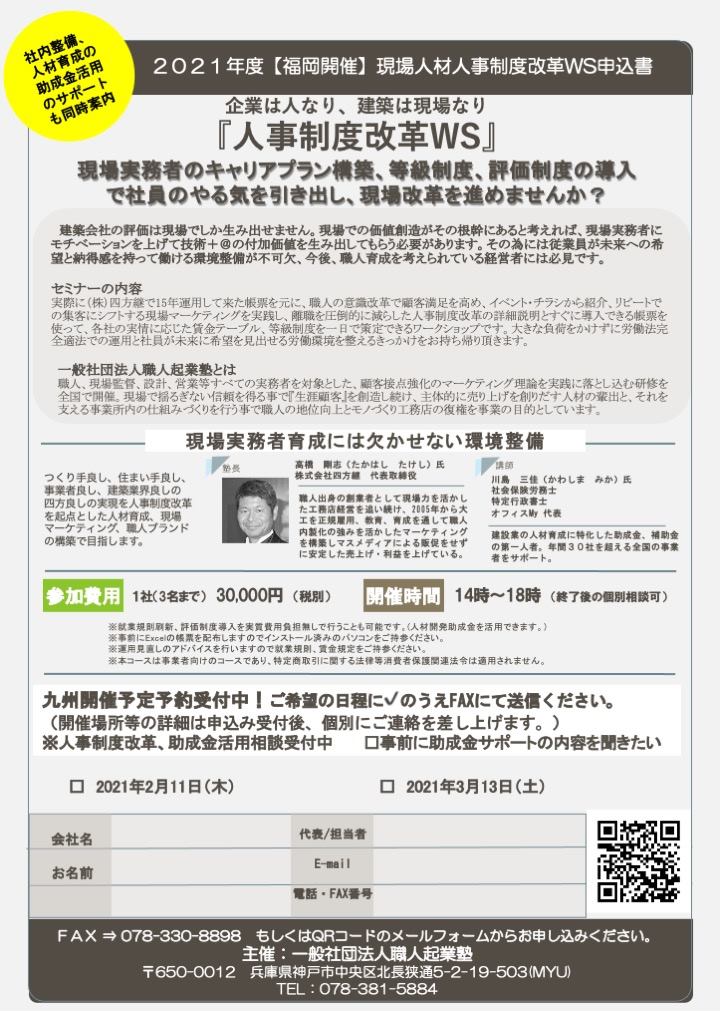 2月11日(木)・3月13日(土) 建築実務者向けキャリアプラン構築の人事制度改革WS
