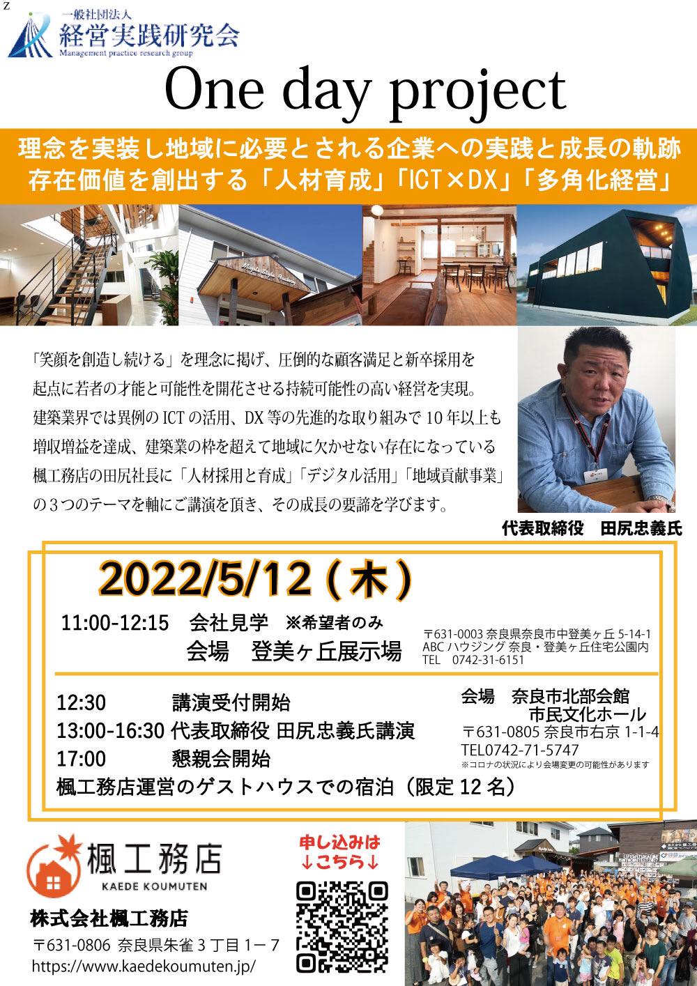 2022年5月12日(木)楓工務店田尻社長に学ぶ「人材育成」×「ICT×DX」「多角化経営」【経営実践研修会主催】0ne day projyect